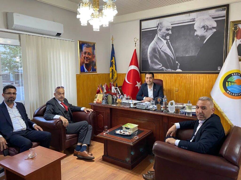 Atatürk Havalimanı Millet bahçesinde 29 Ekim 2 Kasım tarihleri arasındaki düzenlenecek ‘HATAY TANITIM GÜNLERİ’ne Erzin belediye Başkanı Ökkeş Elmasoğlu’nu ziyaret eden Hatay Konfederasyonu Genel Başkan Yardımcısı Ali Çalışkan, Yunus Küçük ve Nazmi Kalkar, konfederasyon çalışmalarıyla ilgili bilgilendirmede bulunarak düzenlenen etkinliğin davetiyesini takdim ederek davette bulundular.