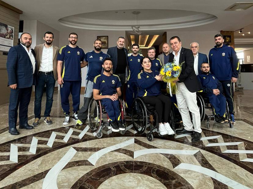 İskenderun Belediyesi Engelliler basket takımı ile maç yapmak üzere İskenderun’a gelen Fenerbahçe Engelliler Basket kadın takımını kaldıkları Ramada otelinde ziyaret eden İskenderun Fenerbahçeli’ler Derneği başkanı Mustafa Düzen ve yönetim kurulu üyeleri takımlarına takdim ettikleri çiçeklerle hoş geldin diyerek hem yalnız bırakmadılar hem de başarı dileğinde bulundular.